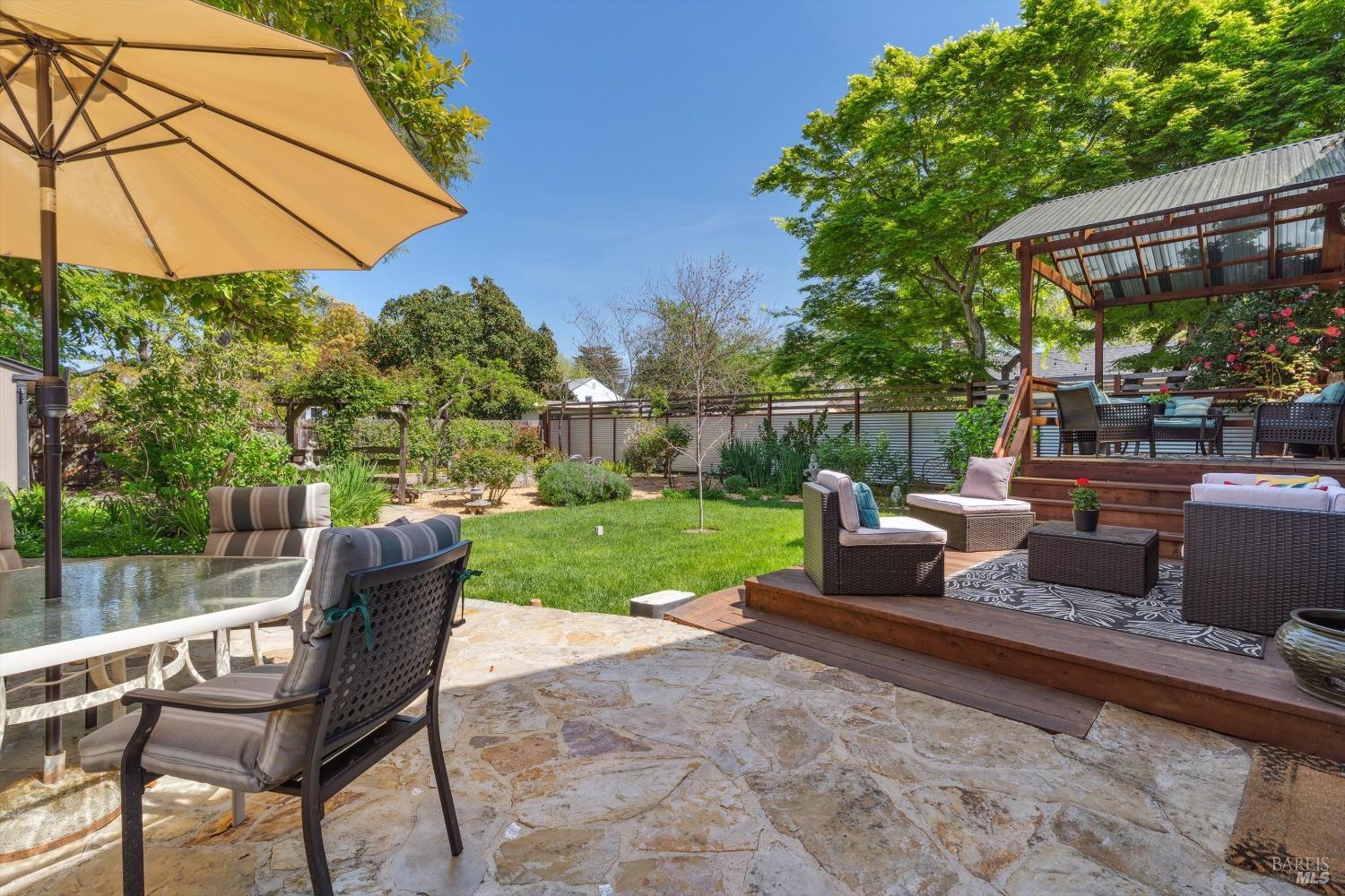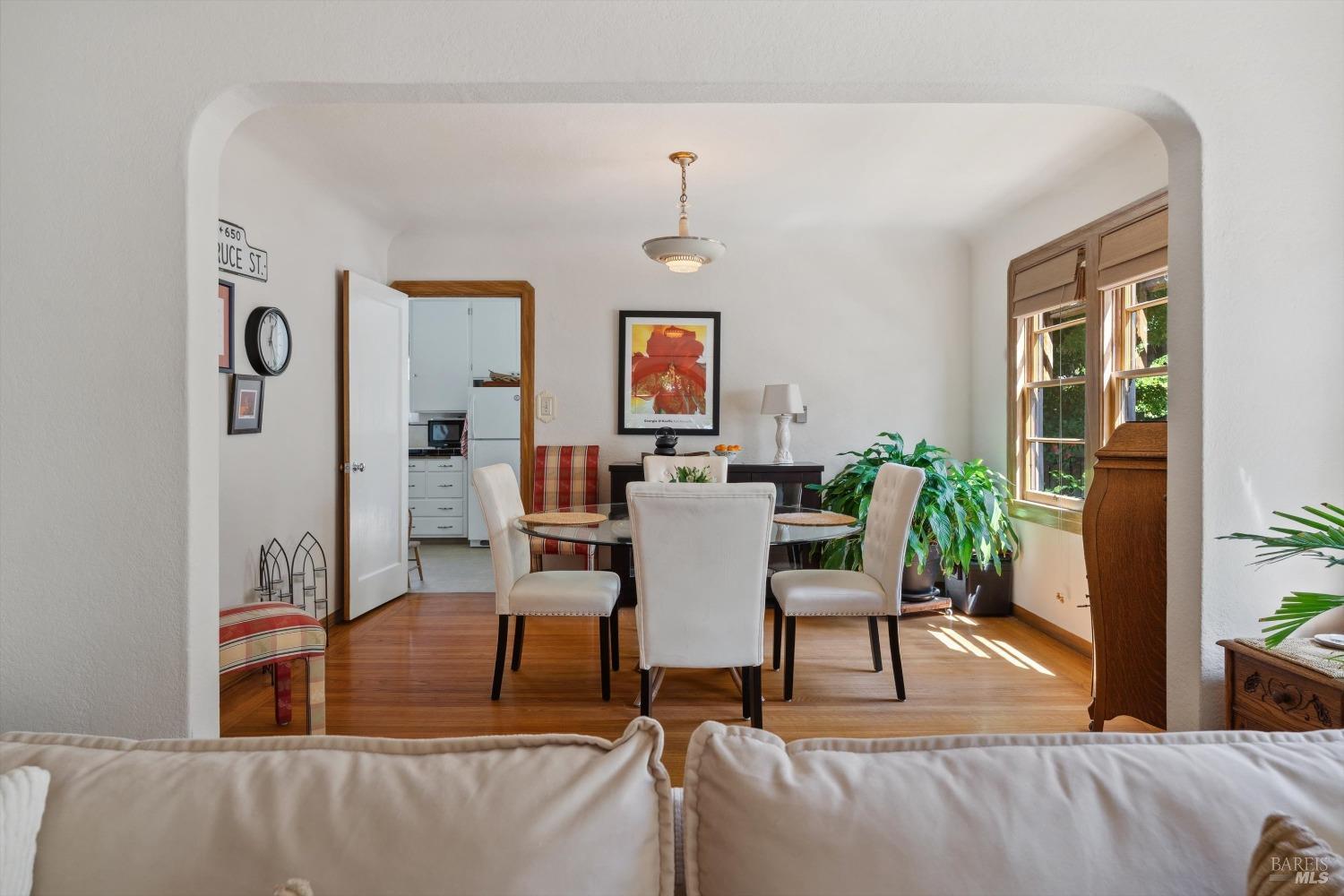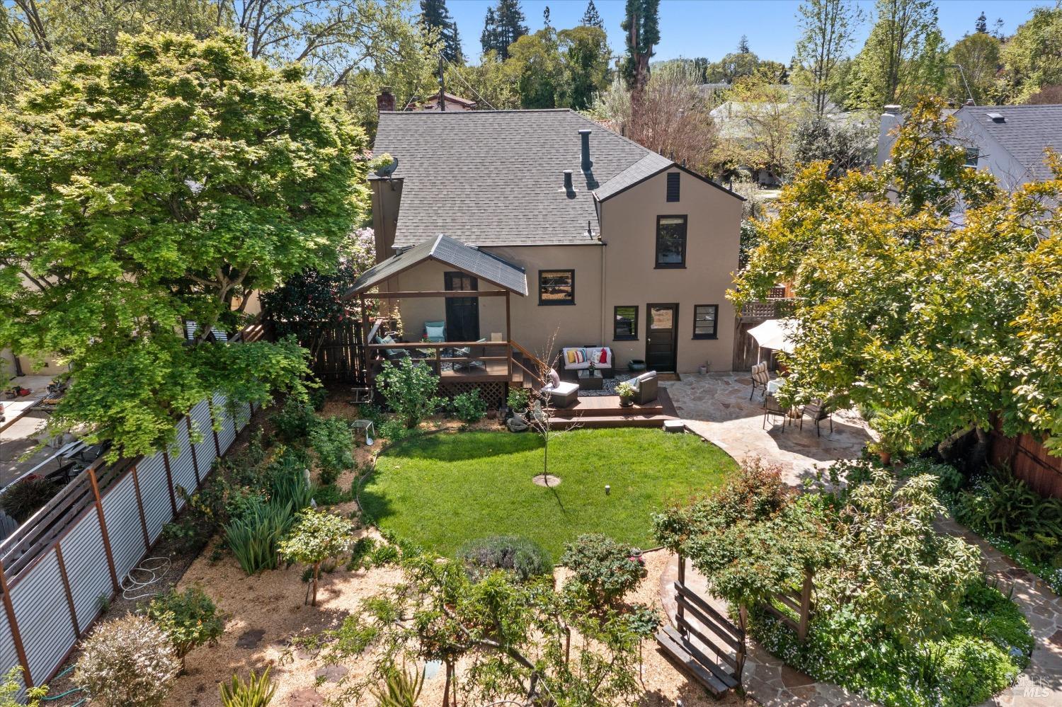 Located in Napa's coveted Tree Street District, this rare Devita built home is a timeless treasure. A true 1939 architectural gem brimming with preserved character from original hardwood floors and built-ins to an arched picture window that floods the living room with sunlight. The kitchen boasts a vintage Wedgewood stove in pristine condition, surrounded by era-authentic tile. Thoughtfully maintained to retain its historic integrity, this 3BD/2.25BA home offers large primary bedroom with hidden space to create an ensuite. The finished garage has guest overflow potential. Outside, a lush backyard oasis features a covered deck, mature landscaping, and space for entertaining or relaxing under the trees. Located just blocks from downtown Napa, this home offers distinctive charm in an unbeatable setting. A true must see!
